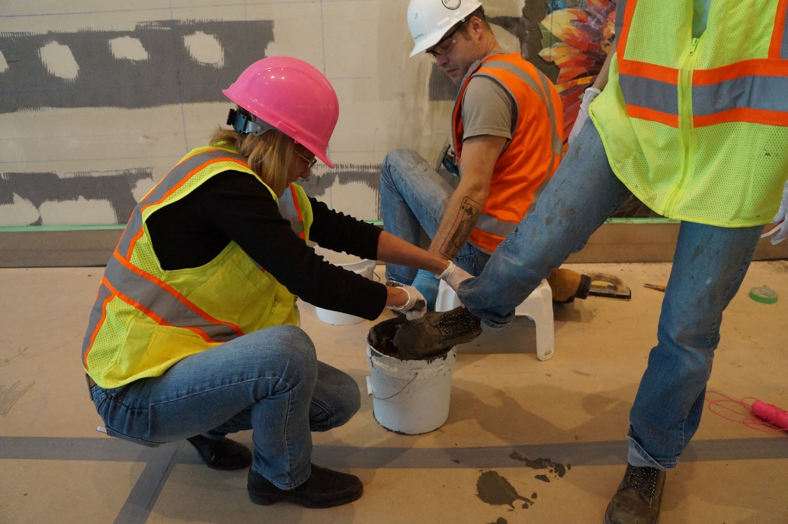 | Today, the best part of our day was Kate accidentally stepping in the mortar bucket. |